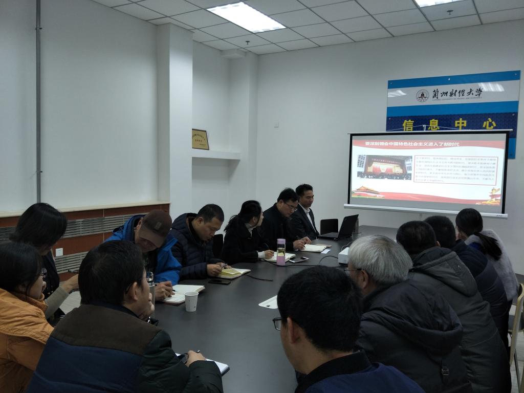 根据学校党委党的十九大精神宣讲工作安排,2017年12月1日,在信息中心会议室,马克思主义学院副院长陈张林博士为信息中心全体教职工做了《学习十九大精神需要深刻领会的十个重点问题》的专题辅导报告。报告会由信息中心主任卫中亮主持。