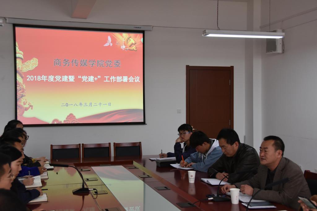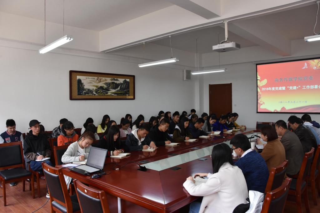 2018年3月21日,商务传媒学院召开党建工作会议,安排部署新学年党建暨“党建+”工作。学院党委书记杨润林,学院党委委员、党支部书记、学生党建工作委员会、党小组组长等相关同志参加了会议。