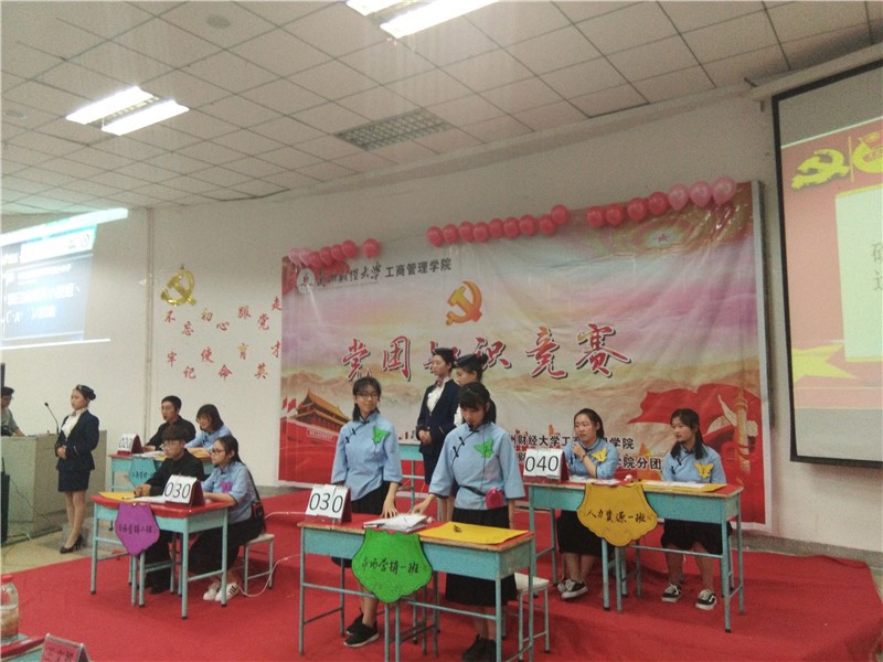 为了深入贯彻学习党的十九大精神和两会精神,进一步加强大学生思想政治教育,提高党团员的思想政治觉悟。工商管理学院于3月27日在知行楼302教室举办了以“不忘初心跟党走,牢记使命育英才”为主题的党团知识竞赛。