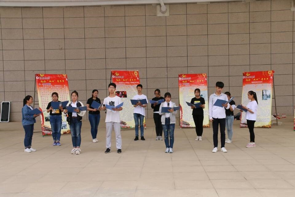 展览分引言、“五四”青年节的来历、“五四”运动学会代表、马克思、列宁、毛泽东、习近平等无产阶级领袖的青年时期、青年榜样、他们的21岁、毛泽东、习近平对青年的寄语、《共产党宣言》发表170年、马克思诞辰200周年等板块。同时,同学们在展板下集体诵读梁启超作于1900年的《少年中国说》。