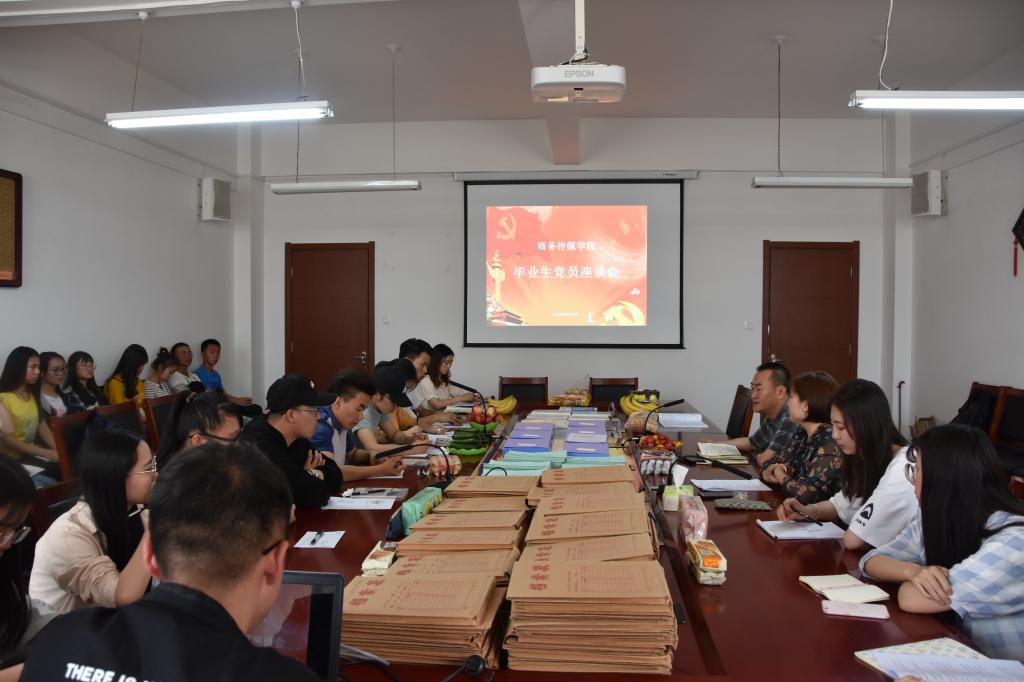 在中国共产党“七一”建党节来临之际,2018届毕业生即将告别母校之时,为进一步推进“两学一做”学习教育制度化常态化,增强毕业生党员的集体荣誉感和社会责任感,6月6日中午,商务传媒学院在致远楼10号会议室召开了毕业生党员代表座谈会。学院党委书记杨润林、党委委员、学生党建工作委员会学生干部、学生党支部支委等40多人参加了座谈会。