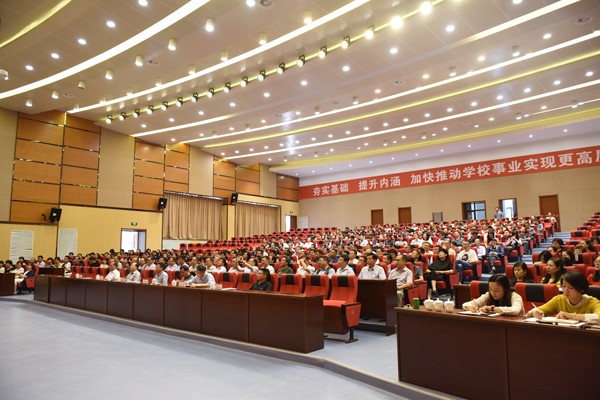 学校领导王亦达、王学军、殷国手、胡凯、王伟利、周渭兵,全校处科级干部、高级职称教师参加会议。