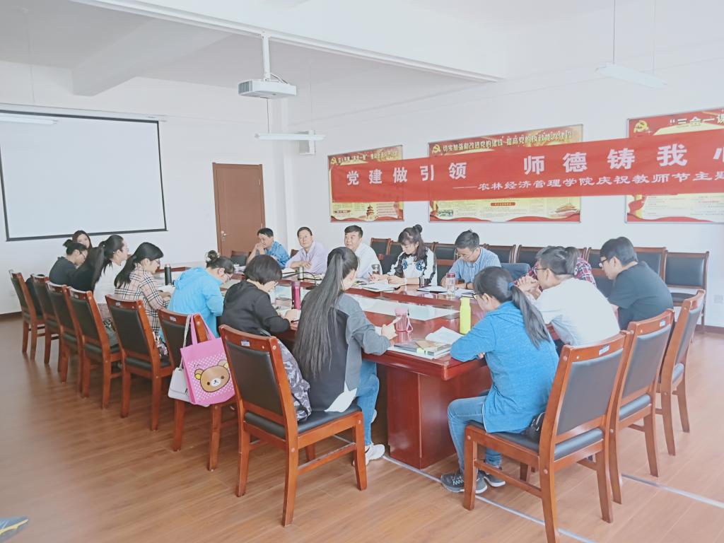 为深入学习贯彻习近平总书记在全国高校思想政治工作会议上的重要讲话精神和全国、全省高校思想政治工作会议精神,进一步加强师德师风建设,坚持“热爱工作、友爱同事、关爱学生、孝爱父母”的原则,在第34个教师节来临之际,2018年9月11日,农林经济管理学院党委开展了以“党建做引领,师德铸我心” 为主题的“弘扬高尚师德,潜心立德树人”主题党日活动。活动由学院副院长、教工党支部书记石志恒主持。学院全体教职工参加了活动。