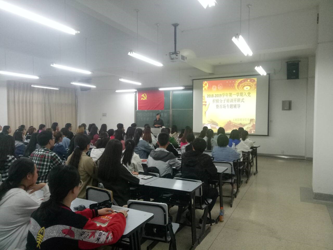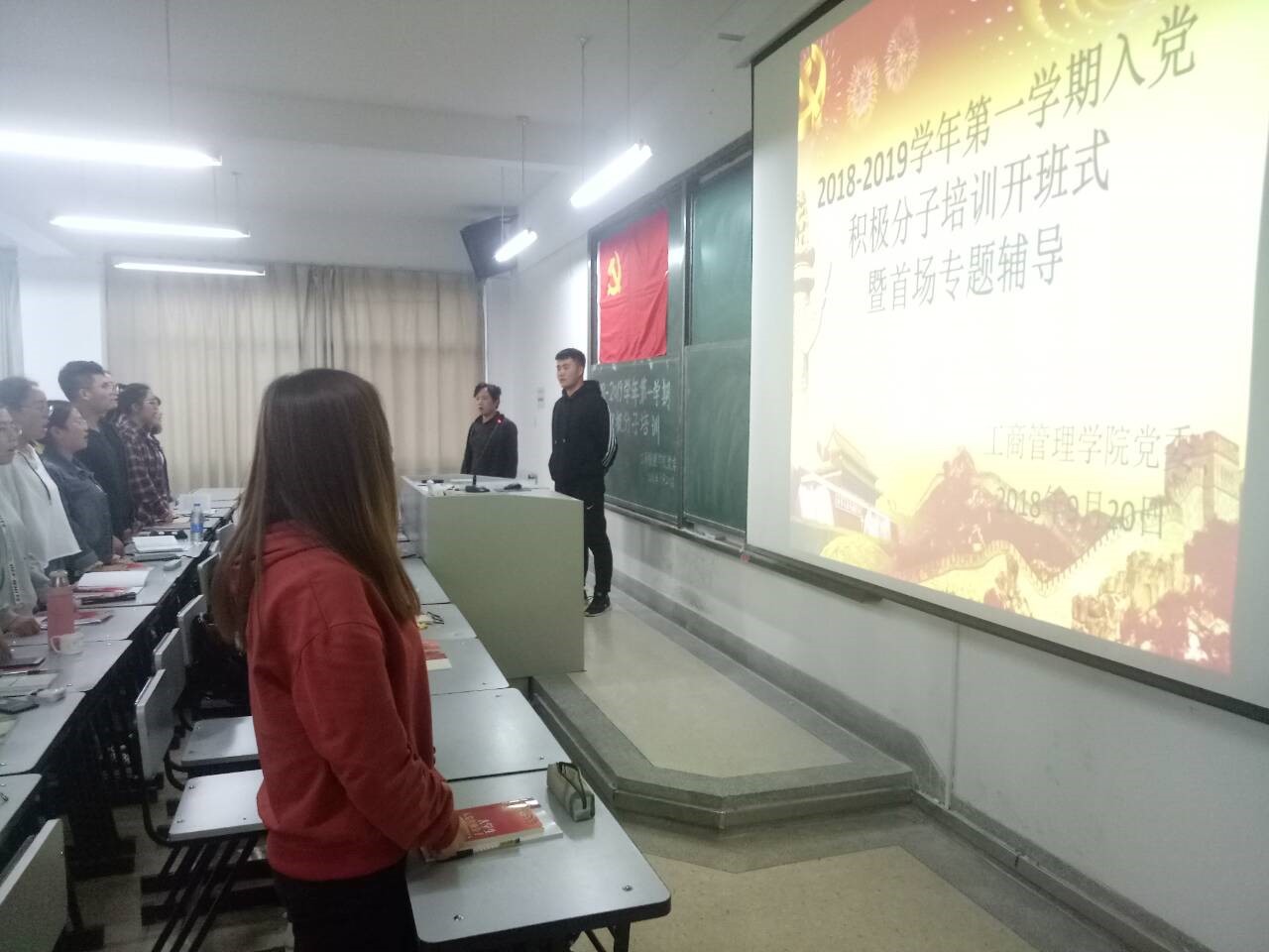 2018年9月20日工商管理学院党委分党校举办2018至2019学年第一学期入党积极分子开班仪式及专题辅导大会。