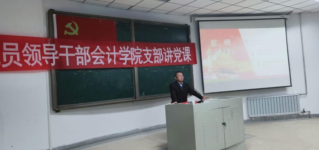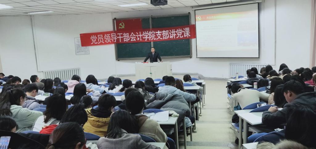 11月7日,会计学院领导干部,学院党委副书记、副院长刘广场为所联系学生第四、第五党支部108名党员讲党课。