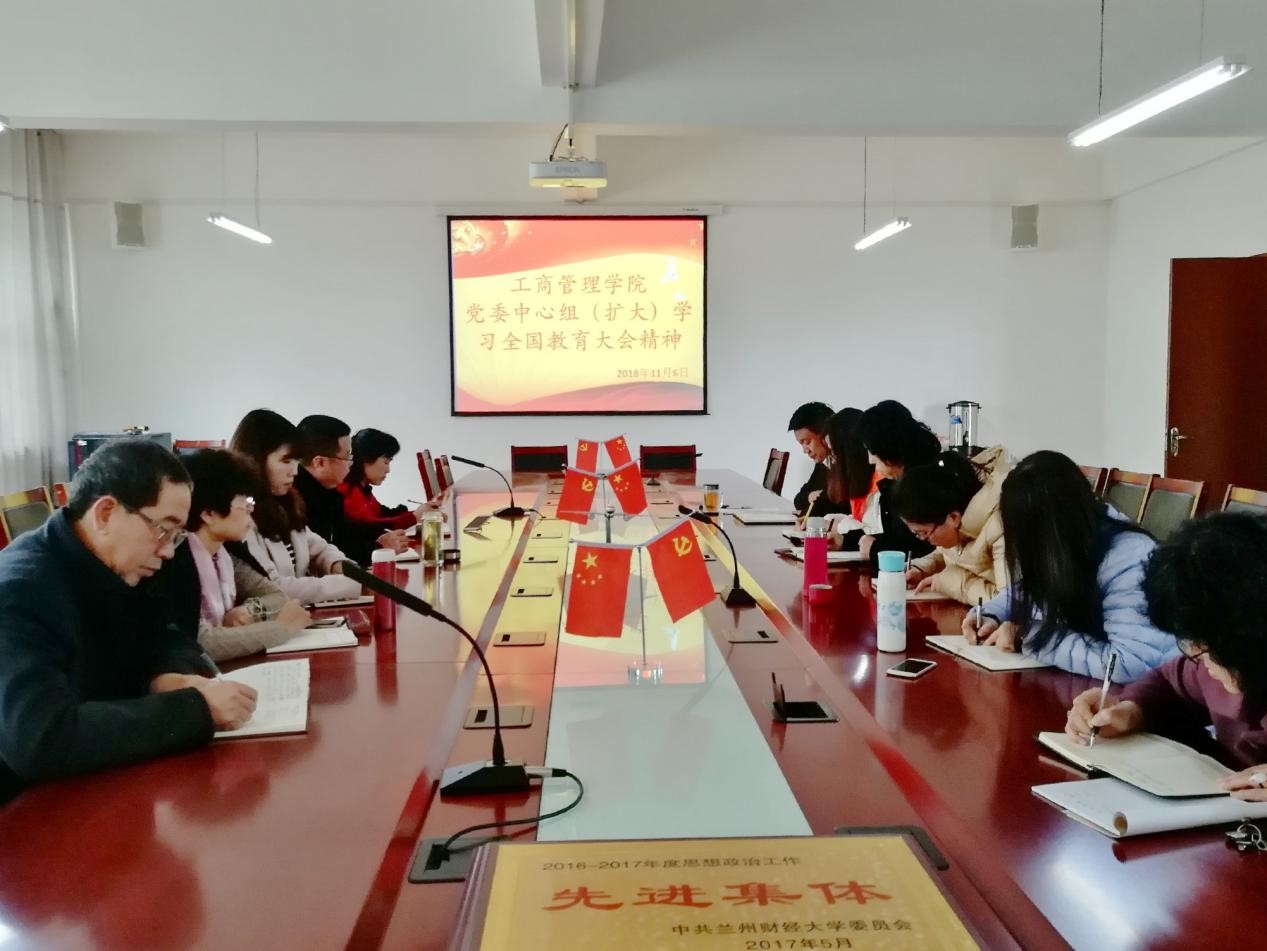 11月6日,工商管理学院党委召开学院党委中心组专题理论学习(扩大)会。学院党委成员和基层党支部书记参加了会议。会议由学院党委书记王仁斌主持。