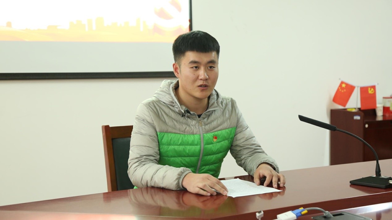 最后,孙金发言:和平生活来之不易,我们每一个人都应该好好珍惜,并且要继续发扬革命精神,为实现中华民族的伟大复兴贡献自己的力量。”他表示要从自身做起,学好专业知识,帮助老师做好党建工作,帮助同学解决困难,他说他一定不忘初心,牢记使命,做一名合格的共产党员。