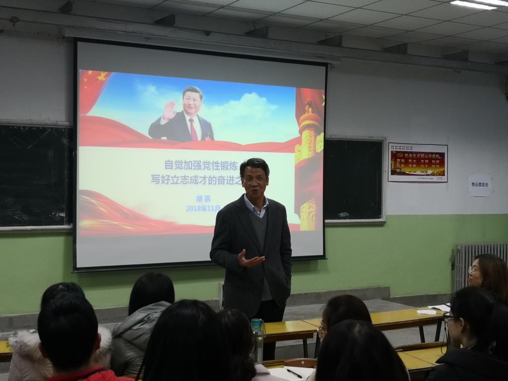 11月15日,副校长胡凯在段家滩校区研究生教学楼阶梯教室以“自觉加强党性锻炼,写好立志成才的奋进之笔”为题,为会计学院研究生党员讲党课。会计学院学生第一、二、三党支部全党员及发展对象和积极分子聆听了生动党课。