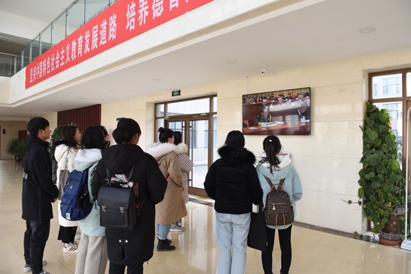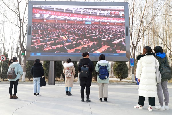 段家滩校区师生代表在图书馆六楼会议室集中收看大会直播。