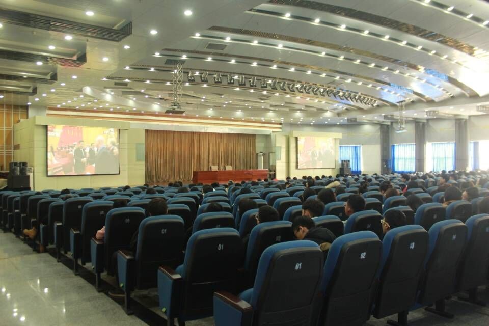 和平校区学生党员、学生干部和学生代表在兴隆讲堂集中收看大会直播。