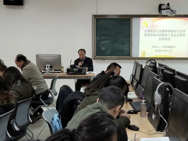 12月11日下午,副校长王伟利为外语学院师生宣讲全国教育大会和新时代全国高等学校本科教育工作会议精神。