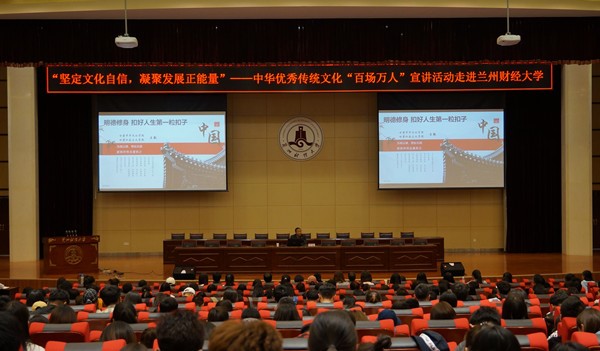 桃红柳绿,草长莺飞。4月16日至17日,由甘肃社会主义学院(甘肃省中华文化学院)组织发起的“坚定文化自信,凝聚发展正能量”——中华优秀传统文化“百场万人”宣讲活动走进兰州财经大学,为我校和平、段家滩两校区1000余名大学生入党积极分子和党员发展对象献上了一道丰盛的文化大餐。甘肃社会主义学院(甘肃省中华文化学院)党组成员、副院长蒲晓贞一行6人出席和平校区宣讲活动,学校副校长王伟利、党委组织部(党校)负责同志参加活动启动仪式。
