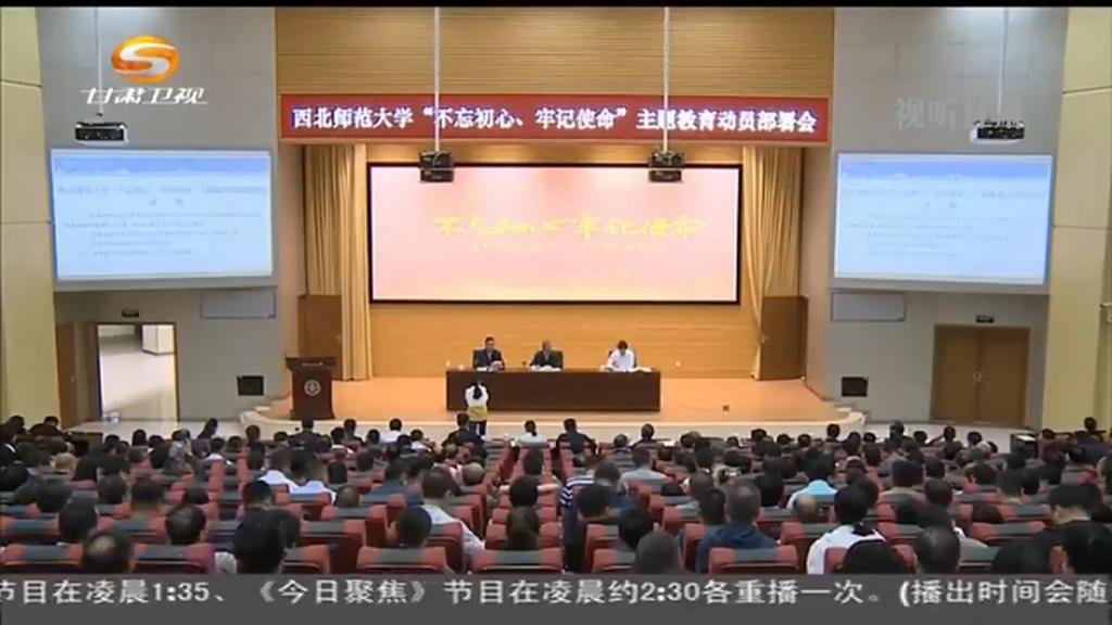 西北师范大学召开“不忘初心、牢记使命”主题教育动员部署会议,要在强化理论武装、加强党性锻炼、主动担当尽责、服务师生群众、廉洁自律上下功夫,统筹推进各项重点措施,推动主题教育取得实实在在的成效。