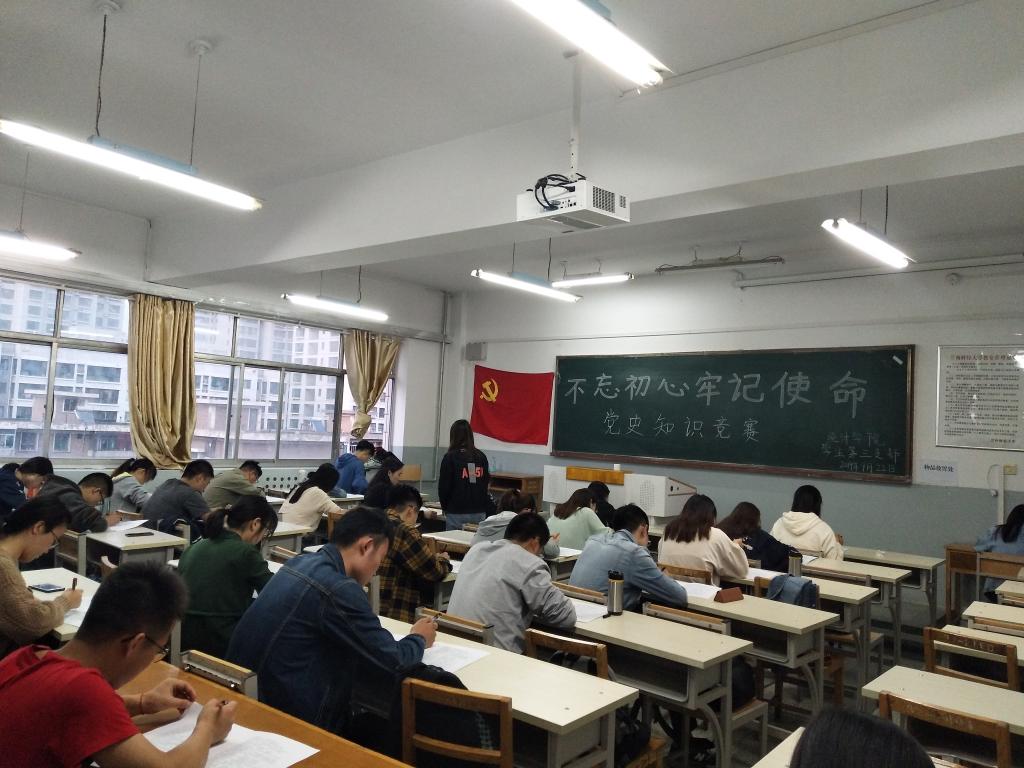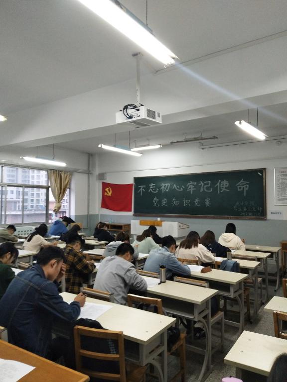 为庆祝新中国成立70周年,在党的“不忘初心、牢记使命”主题教育活动的积极开展下,按照我党“守初心、担使命、找差距、抓落实”的总要求,以及“理论学习有收获、思想政治受洗礼、干事创业敢担当、为民服务解难题、清正廉洁作表率”的具体目标。进一步提升同学们对党的认识,加深广大同学对党务知识的了解,深入贯彻十九大精神,跟随时代感受全民爱国精神。9月22日晚,统计学院研究生党支部在段家滩校区艺术楼601教室组织了“不忘初心、牢记使命”党史知识竞赛活动,研究生党支部的全体在校党员以及入党积极分子参加了此次竞赛。