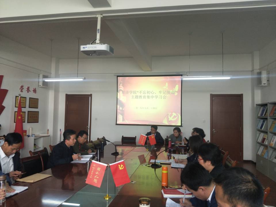 9月24日下午,经济学院党委在致远楼2会议室召开“不忘初心、牢记使命”主题教育推进会暨集中学习研讨会。参加会议的有学院党委成员、全体教工党员。会议由副院长刘建国主持。