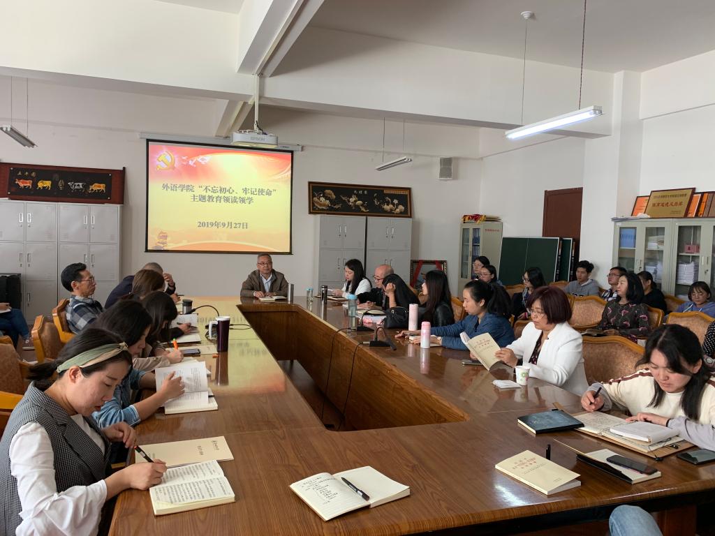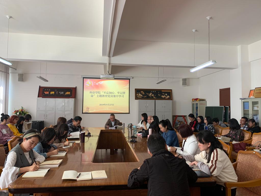 外语学院党委根据“不忘初心、牢记使命”主题教育集中学习安排,9月27日上午,召开“不忘初心、牢记使命”主题教育第一次集中学习。学院全体党员60余人参加了本次学习会,会议由党委书记姚昌义主持。