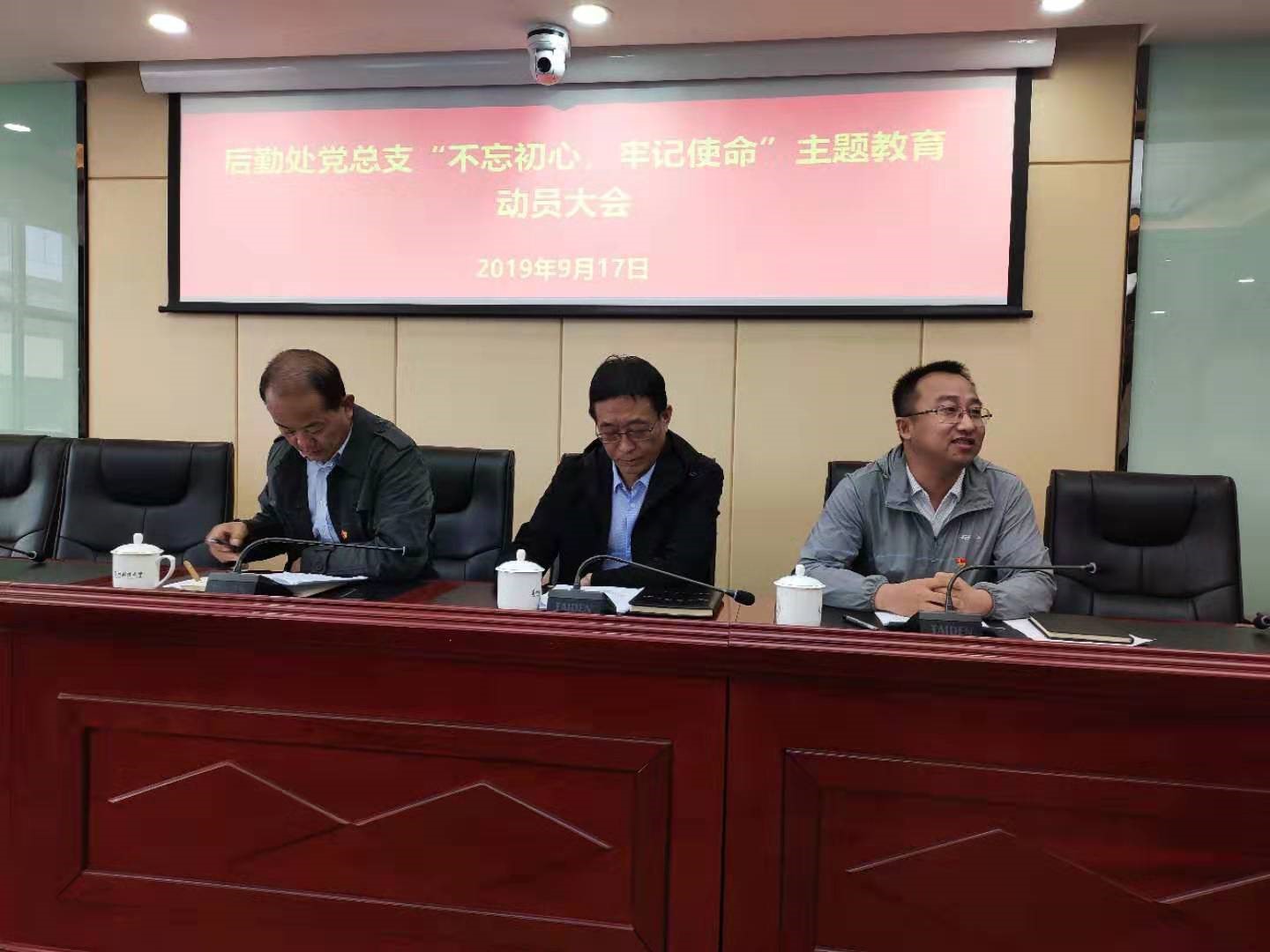 9月17日上午,后勤处党总支召开了“不忘初心、牢记使命”教育动员部署大会,大会由后勤处处长曾明荣主持。后勤处党总支书记王金雄、学校主题教育领导小组第三指导组成员赵小成、梁丽,后勤处全体党员及班组长以上成员参加了此次动员大会。