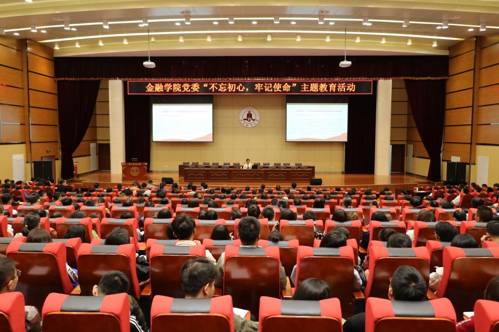 10月8日下午,金融学院党委在兴隆讲堂召开了“不忘初心、牢记使命”主题活动之《习近平新时代中国特色社会主义思想学习纲要》主题讲座。本次主题活动由马克思主义学院副教授刘文玉担任主讲教师,金融学院党委书记李正波、金融学院全体师生党员、本期发展对象及入党积极分子参加了本次主题活动。