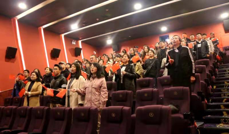 “我和我的祖国,一刻也不能分割......”,歌声在影院响起,师生们挥舞着手中的国旗,泪水在眼睛里打转儿,内心回顾着祖国发展的那些难忘时刻:开国大典,新中国第一颗原子弹爆炸成功,女排夺冠,香港回归,北京奥运,神舟十一号飞船返回舱成功着陆,抗战胜利70周年大阅兵,每一个历史瞬间,都是全民记忆。