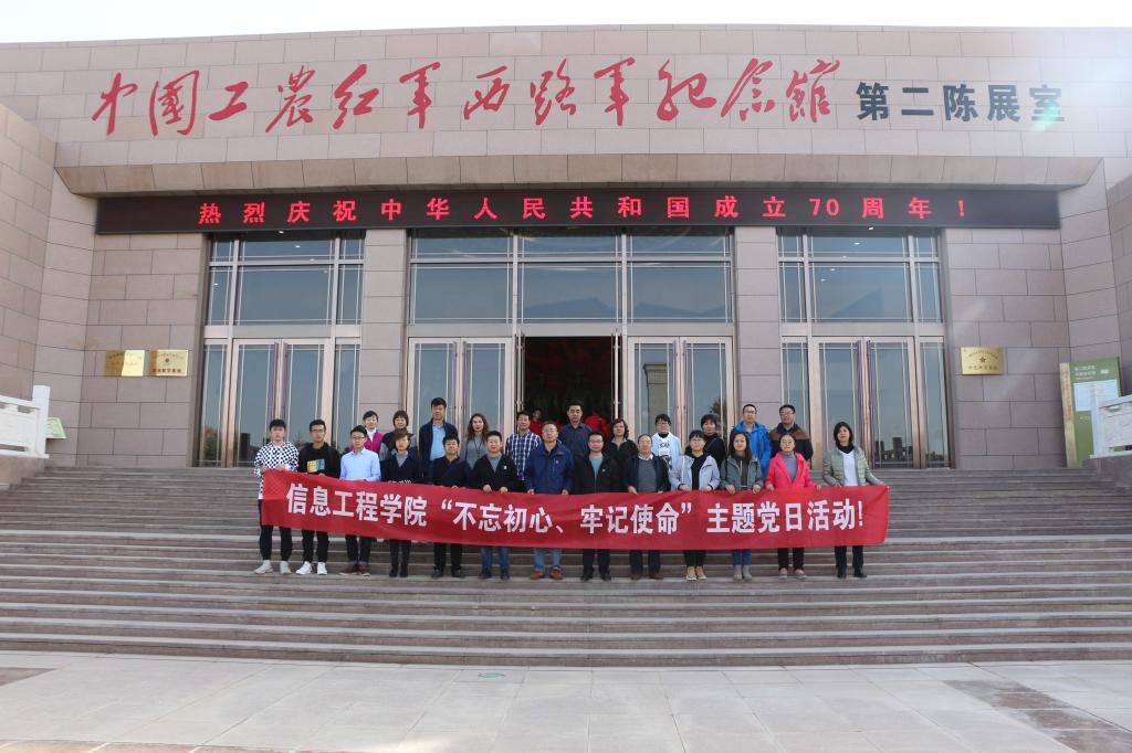 为扎实推进“不忘初心、牢记使命”主题教育深入开展,10月19日,信息工程学院党委紧随习总书记脚步,组织党员赴高台县中国工农红军西路军纪念馆开展“不忘初心、牢记使命”主题党日活动,缅怀革命先烈,追忆历史,接受爱国主义教育。