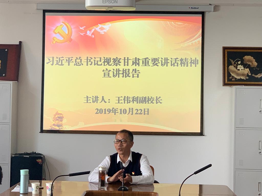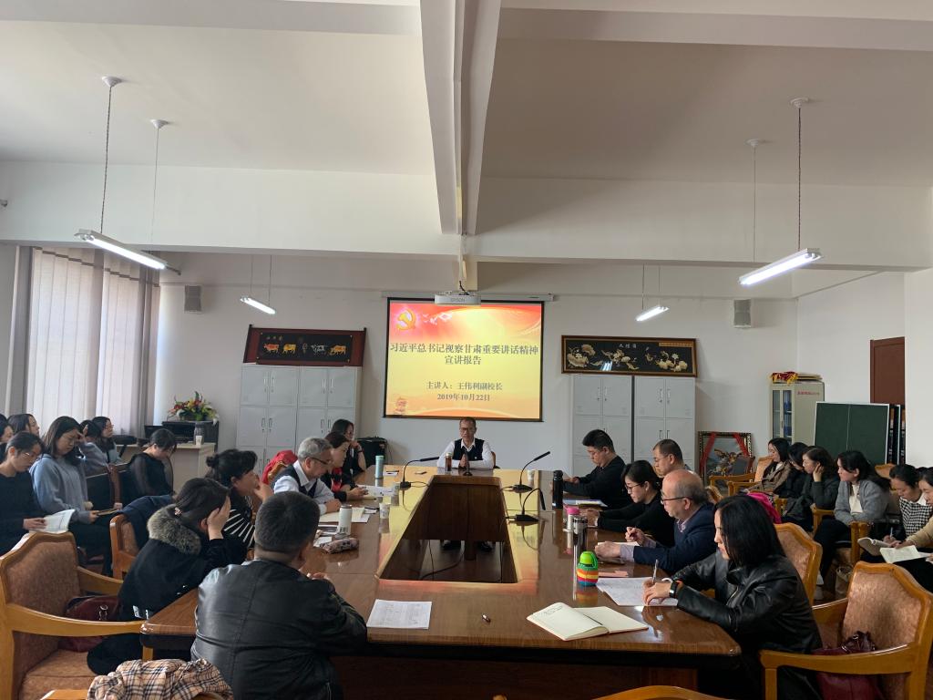 根据学校党委的安排部署,10月22日下午,副校长王伟利在致远楼12号会议室为外语学院全体教职工宣讲习近平总书记视察甘肃重要讲话指示精神。会议由外语学院党委书记姚昌义主持。
