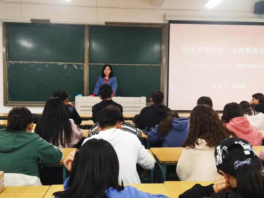 为深入贯彻落实党的十九大精神和习近平总书记在“不忘初心、牢记使命”主题教育工作会议上的重要讲话精神,引导广大学生坚定永远听党话、跟党走的理想信念,激发当好社会主义合格建设者和可靠接班人的使命意识,10月23日晚,在修远楼101教室,由学院党委书记高丽霞做题为“坚定理想信念,发挥模范引领”的辅导讲座,学院团委书记王晓蕾、各班班长、团支部书记、全体团学干部100余人参加。