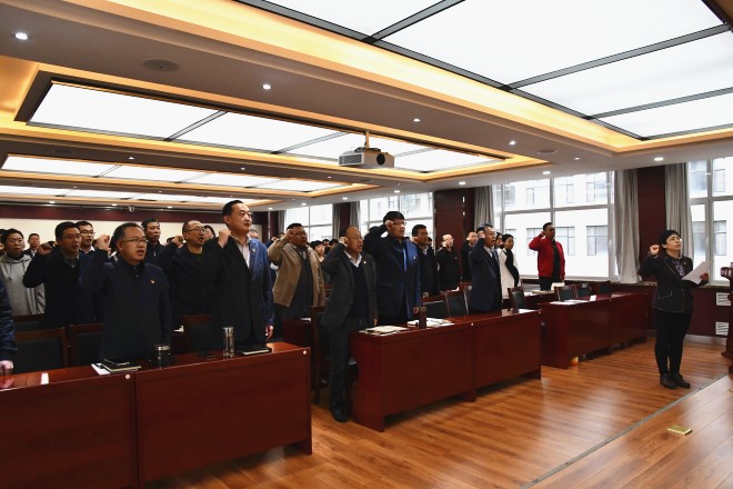 报告会上,机关党委组织全体党员举行了重温入党誓词活动。