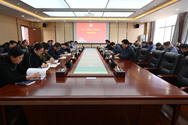 学校各党委(党总支、直属党支部)书记,“不忘初心、牢记使命”主题教育领导小组办公室全体人员,学校办公室、教务处、科技处、学位管理与研究生工作处、团委的主要负责人参加会议。