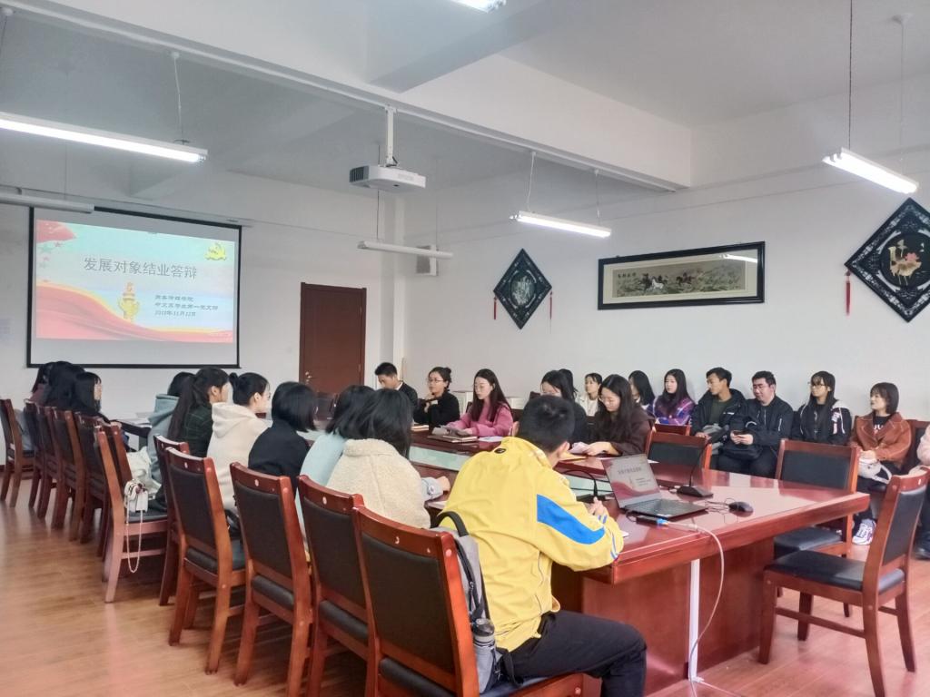 答辩内容包括个人陈述和问答两个环节。个人陈述环节,发展对象通过PPT对参加党校培训以来的学习感悟、初心历程和反思展望等进行展示和汇报;现场问答题目包括基础知识和“不忘初心、牢记使命”主题教育的应知应会内容,由答辩评委进行随机提问。汇报认识到位、问题回答正确视为答辩合格。本次结业答辩主题鲜明、内容生动、氛围良好、反响强烈。通过答辩,发展对象进一步端正了入党动机,加深了对党组织的认识,明确了今后的目标任务和努力方向,深刻领会了肩负的历史使命和社会责任,为更好地在学习和工作中发挥先锋模范带头作用,成为合格党员奠定了坚实的思想基础。