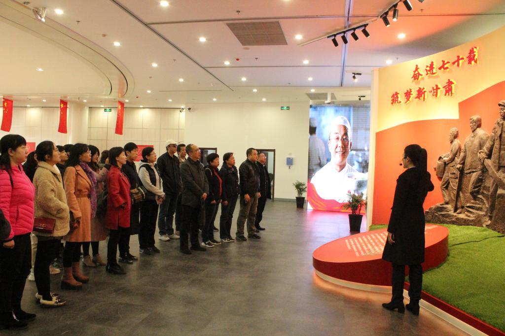 在甘肃省经济社会发展展览馆,全体师生集体参观了甘肃省庆祝中华人民共和国成立70周年主题展览。展览以“奋进七十载,筑梦新甘肃”为主题,全面总结了新中国成立70周年以来,陇原儿女在党中央的领导下,凝心聚力、开拓奋进,在坚决打赢脱贫攻坚战、保障和改善民生、推动经济高质量发展、保护好西部生态屏障等事业中创造的令人惊叹的骄人成就。大家在讲解员的引导下有序观展,并在“中央关怀春风化雨”“陇原儿女奋发图强”“七十春秋初心不忘”“筑梦路上使命在肩”等主题版块前不时驻足观看,认真聆听讲解。一页页珍贵的文档,一组组详实的数据,一张张精选的图片,一段段写实的视频,一件件各具特色的实物,展示了新中国成立70周年来,特别是党的十八大以来,在以习近平同志为核心的党中央坚强领导下,省委省政府团结带领全省各族人民持续发扬“人一之、我十之,人十之、我百之”的甘肃精神,凝心聚力、砥砺前行。看到甘肃省在经济社会发展、基础设施建设、对外开放、科学研究、脱贫攻坚、生态保护、教育卫生等领域所发生的巨大改变和令人振奋的辉煌成就,大家纷纷为此感到骄傲,为陇原人民的生活变化感到无比自豪。