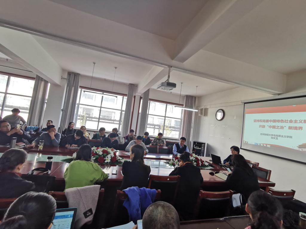 11月12日下午,在致远楼3号会议室,会计学院邀请马克思主义学院副教授刘文玉博士,做了坚持和完善中国特色社会主义制度,开辟“中国之治”新境界的专题辅导报告。报告会由学院院长南星恒主持,全体教职工参加了报告会。