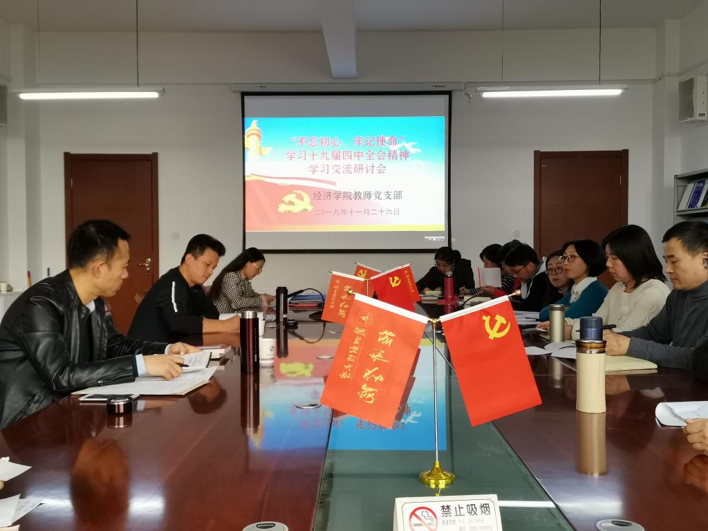 11月26日下午,经济学院行政党支部、教师党支部分别召开了学习十九届四中全会精神研讨会。经济学院全体教职工党员参加会议。