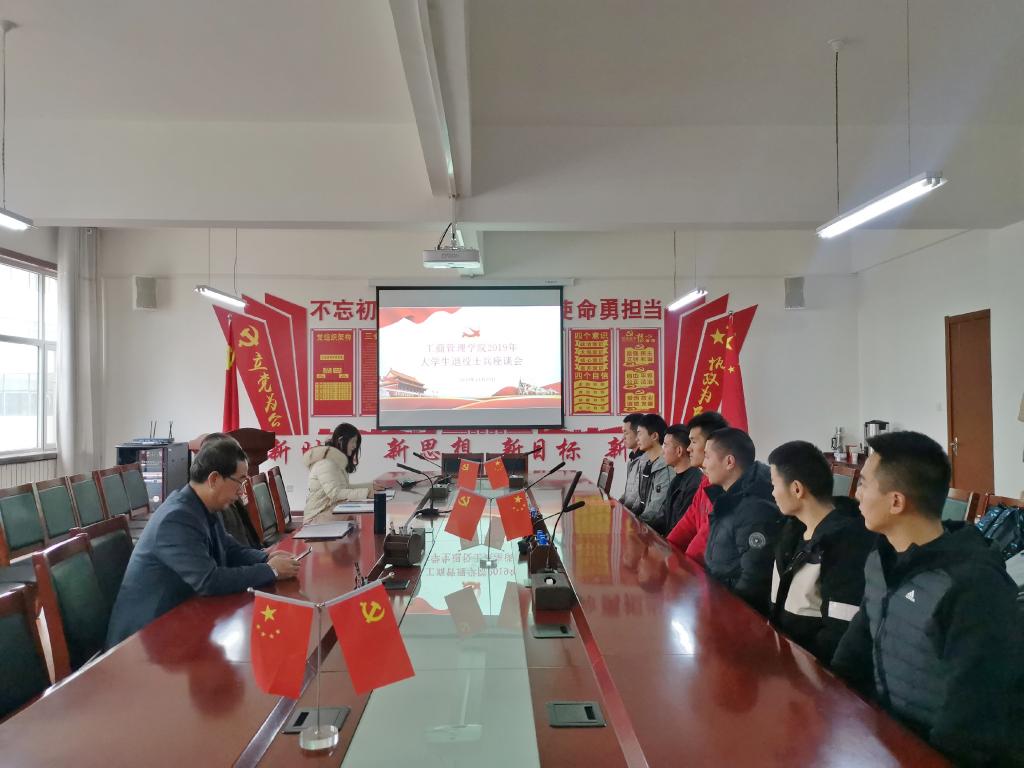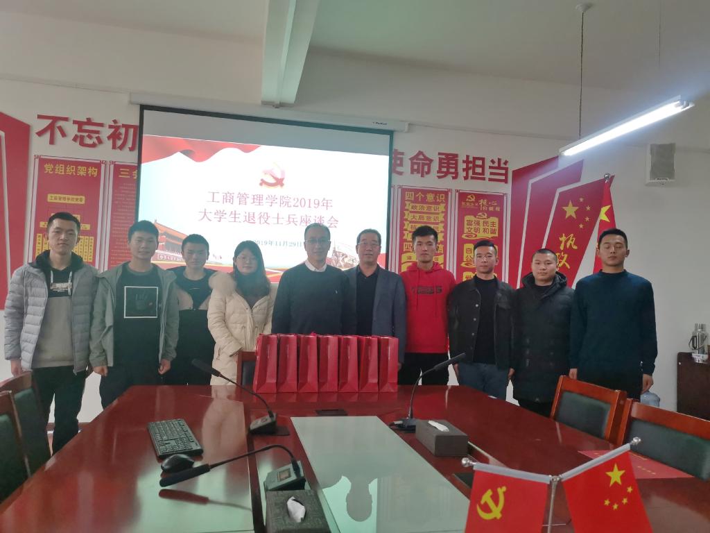 为扎实推进“不忘初心、牢记使命”主题教育,帮助退役复学学生更好地融入大学生活,11月29日下午,工商管理学院党委在致远楼8号会议室举行了2019年退役复学学生座谈会。学院党委副书记牟凯、分团委书记余茜、专职辅导员丑小林、梁丽及2019年退役复学学生参加了此次座谈会。