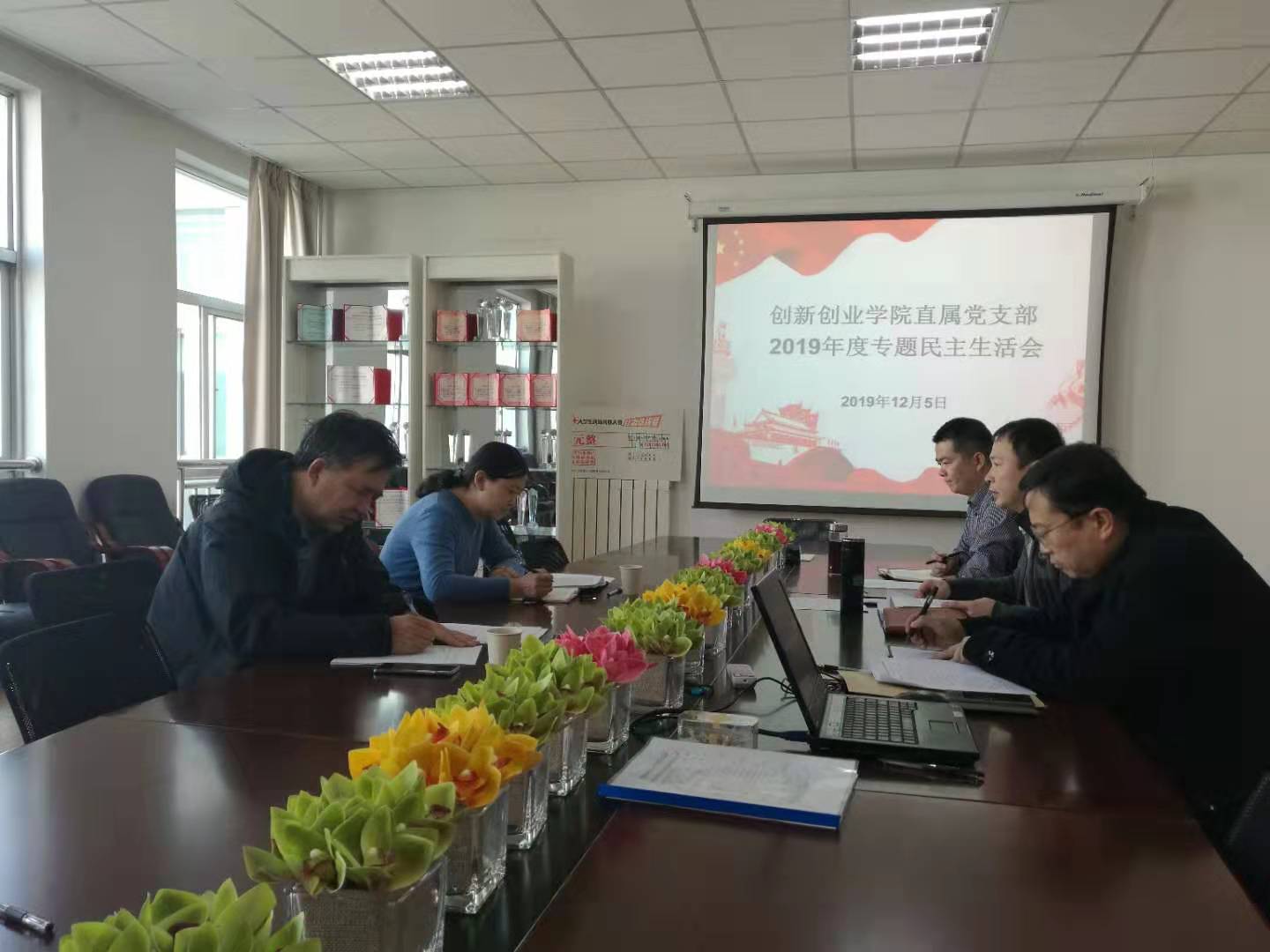12月5日,创新创业学院直属党支部在立德楼503会议室召开了2019年度“不忘初心,牢记使命”专题民主生活会,副校长王必达、学校第二指导组组长李景怡列席会议并做指导讲话,学院党支部委员、办公室主任参加了会议。