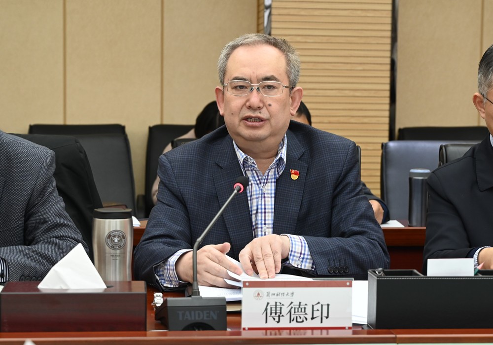 傅德印代表学校党委领导班子作表态发言。他表示,学校一定高度重视,认真落实整改,按照省委主题教育第十巡回指导组提出的指导意见,以及省纪委、省监委第八监督检查室提出的建议和要求,坚定理想信念,改进工作作风,进一步推动主题教育成果转化,进一步推动学校实力提升、工作改进,把责任扛在肩上、任务抓在手上、把中央和省委部署放在心上、落实在行动上;要认真研究,从严从实抓好整改落实,建立健全主题教育常态化机制;要以专题民主生活会为契机,进一步学习贯彻落实习近平新时代中国特色社会主义思想和党的十九届四中全会精神,着力推动学校各项工作的质量提升,在巩固主题教育成果的同时,把民主生活会的成效作为整改落实、推动工作的动力,努力推动学校各项工作的落地见效。